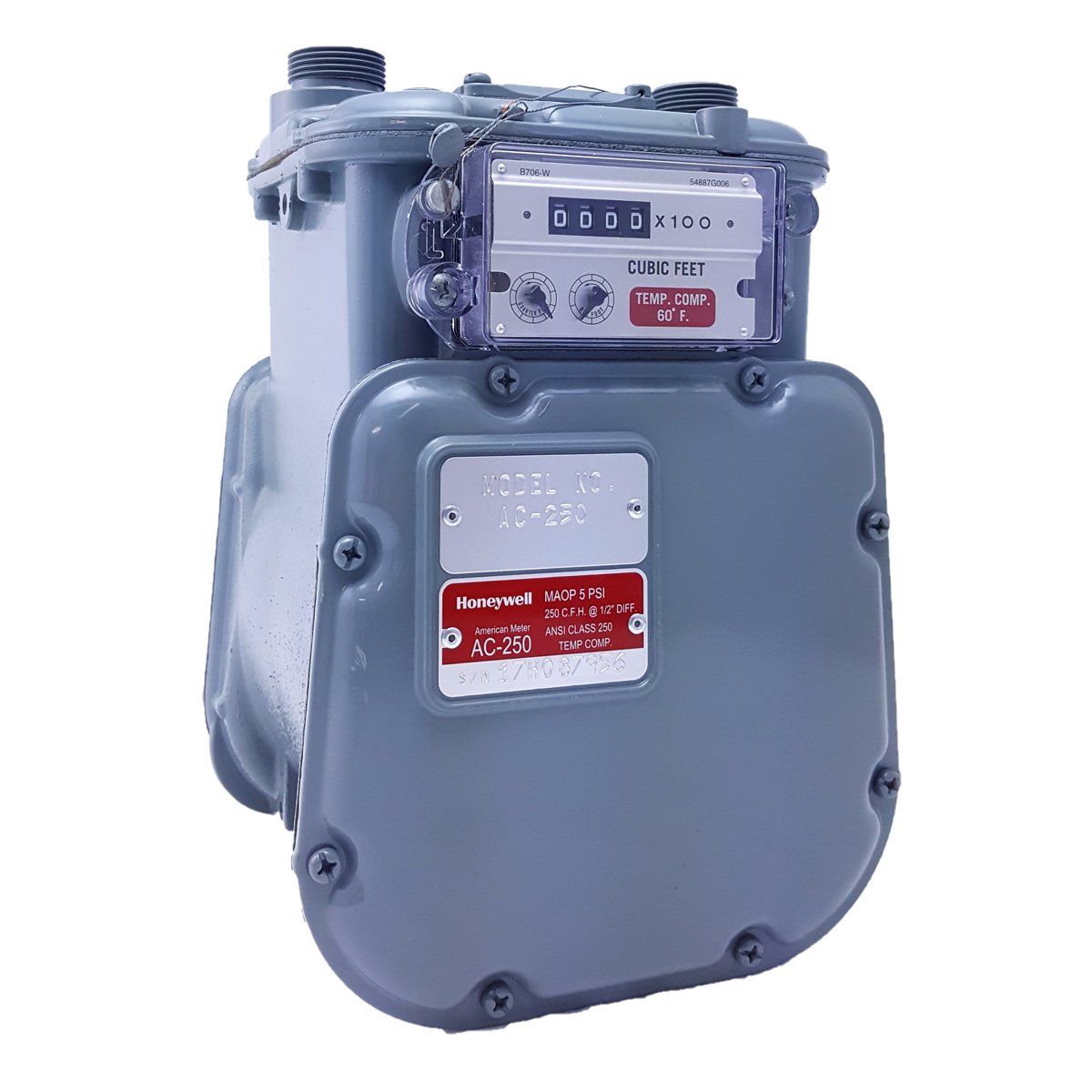 The aluminum class AC-250 is the industry’s most cost-effective gas meter for residential applications. It is unequaled for accuracy retention and for life cycle maintenance economies. The standard for measuring a variety of hydrocarbon gases at pressures up to 10 PSIG and flow rates up to 250 cubic feet per hour.